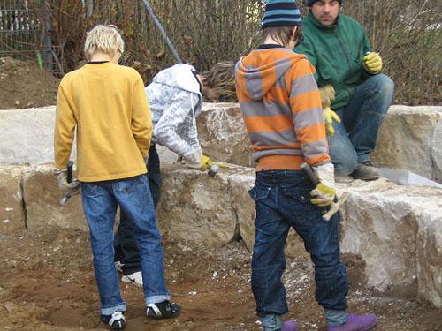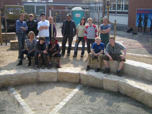 Projektidee: Der Pausenhof im Eingangsbereich der Hauptschule Schlößleinsgasse ist eine kahle Teerfläche ohne jeglich Funktion, ohne jede Möglichkeit zum Spielen oder Ruhen für die Kinder. Basierend auf den Wünschen der Schüler soll der Pausenhof gemeinsam ihnen umgestaltet werden. Der Ansatz ist eingebettet in das Schulprofil, dass jedes Schuljahr konkrete notwendige handwerklich und künstlerische Verbesserungen am Schulhaus/-gelände im Rahmen von Projekttagen in Zusammenarbeit mit Eltern und externen Fachleuten durchgeführt werden.